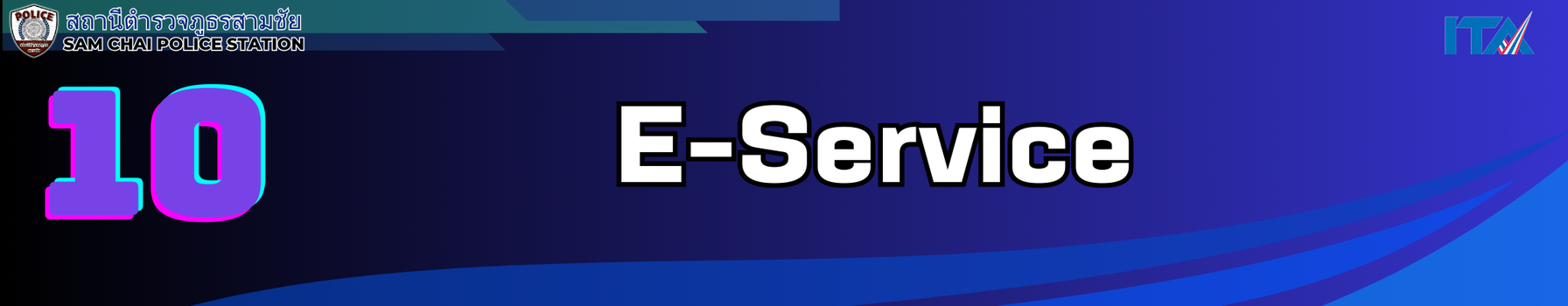 O10 E-Service - ระบบเสียค่าปรับ Online - ระบบการติดตามความคืบหน้าของคดี -ระบบค้นหาข้อมูลสถานีตำรวจสำหรับแจ้งการชุมนุมสาธารณะ - ระบบแจ้งความ Online -ศูนย์กลางแอปพลิเคชั่นของสำนักงานตำรวจแห่งชาติ -ระบบร้องเรียนเจ้าหน้าที่ตำรวจสำนักงานจเรตำรวจ